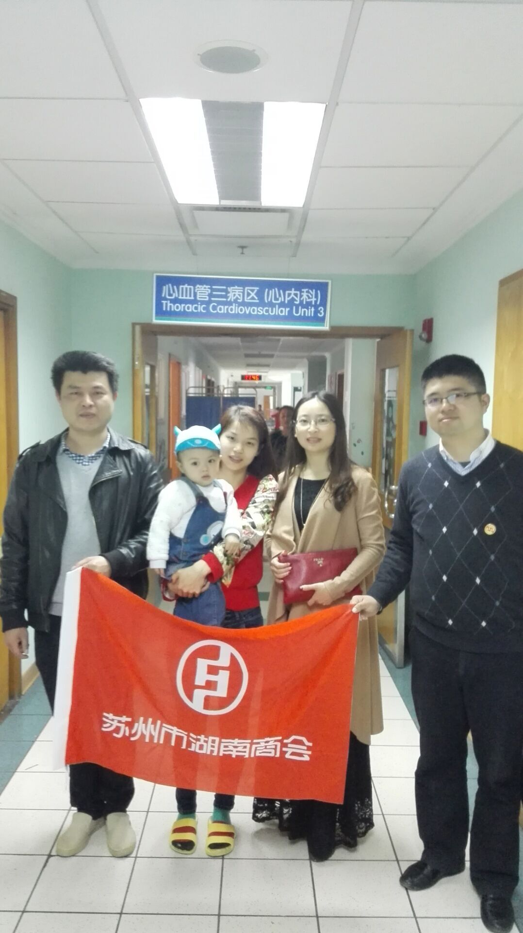 2016年4月1日苏州市湖南商会慈善爱心会余燕燕会长带领商会秘书处一行前往上海儿童医学中心探望受捐助的荣恒墨小朋友。