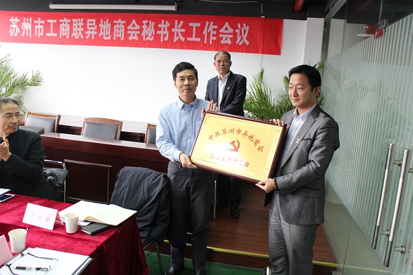 然后由萧泰来处长为苏州市异地商会联合党支部的授牌;