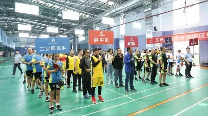 本次运动会共设立了乒乓球、羽毛球、4*100接力、拔河、篮球、两人三足六项比赛,仍分为园区、姑苏区、相城区、吴中区四个团队进行比赛,经过激烈角逐,最终园区队捧获团体冠军!