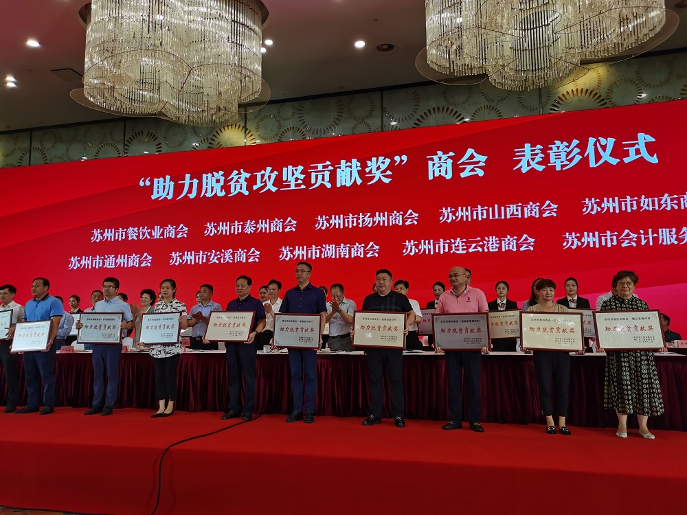 8月5日下午,在苏州市工商联十四届四次常委(扩大)会议暨苏州市民营企业家理想信念报告会上,我商会会长喻四海获得“2019年苏州市优秀商会会长”,我商会被表彰为苏州市“四好”商会,并获得“助力脱贫攻坚贡献奖”。苏州市扬州商会会长喻四海及商会秘书处参加了本次会议。