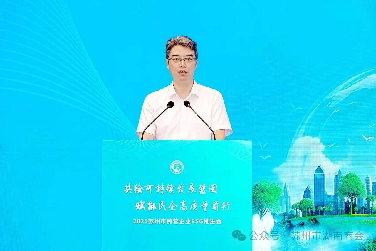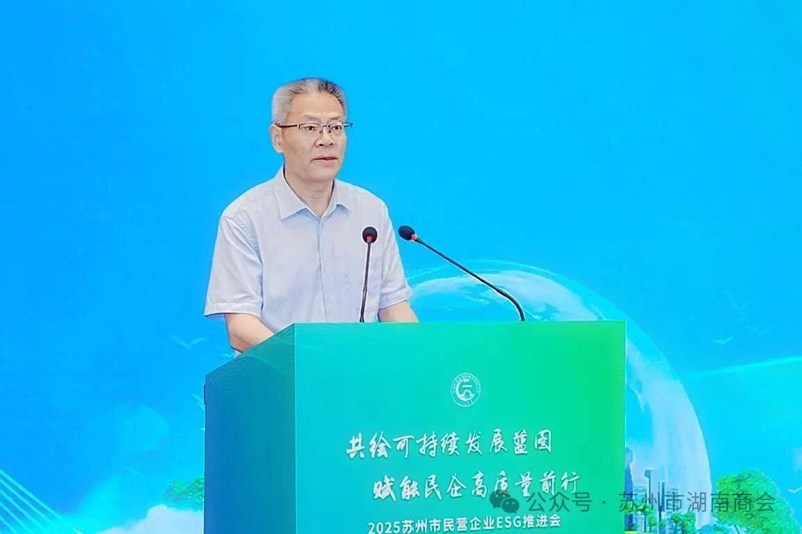 7月28日,“共绘可持续发展蓝图,赋能民企高质量前行”2025苏州市民营企业ESG推进会召开,为民企高质量可持续发展注入新动能。省工商联党组成员、副主席李晓林,市政协副主席、市工商联主席周俊到会致辞。市委统战部副部长、市工商联党组书记王蓓蕾参加会议。市各相关部门、企业负责同志,各县级市(区)工商联负责同志,ESG领域专家学者,市企业可持续发展联合会会员单位及商(协)会代表参加会议。商会会长蒋乙明、党支部书记谭建华、执行会长熊廷彦、常务副会长陈文清、执行副会长周添喜、副会长&慈善委员会主任委员陈玉兰、副会长谢长伟,周兵,理事&电子行业分会会长史健康、理事蔡位辉以及秘书处参加会议。