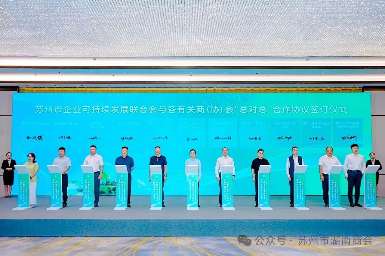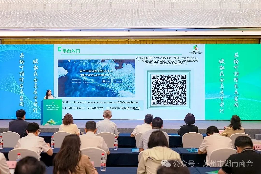 会上,苏州市企业可持续发展联合会发布了《苏州市民营企业ESG白皮书》,这是苏州首次发布反映民营企业ESG实践的白皮书。苏州市民营企业ESG服务平台启用,旨在为企业提供ESG自诊断、供需对接、金融匹配等服务。同时,还为苏州市民营企业ESG服务中心揭牌,向入驻中心的服务机构代表颁发聘书,并启动苏州市民营企业ESG第一批优秀案例征集工作。苏州市企业可持续发展联合会与苏州工业园区企业可持续发展生态促进会签订战略合作协议,并与苏州市湖南商会等10家市属商(协)会代表签订“总对总”合作协议。