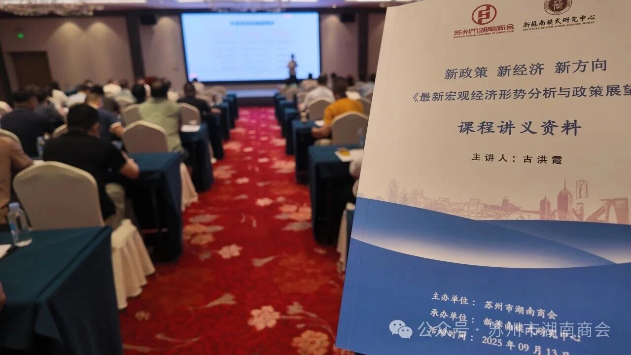 本次活动以《最新宏观经济形势分析与政策展望》为主题,特邀应用经济学专家、新苏南模式研究中心智库主任古洪霞老师作专题授课。现场,古洪霞老师从国际政治经济格局出发,结合特朗普两届执政中的政策取向,系统分析了中美贸易摩擦、金融与科技脱钩、地缘安全、资本市场风险等对中国经济与民营企业的影响。