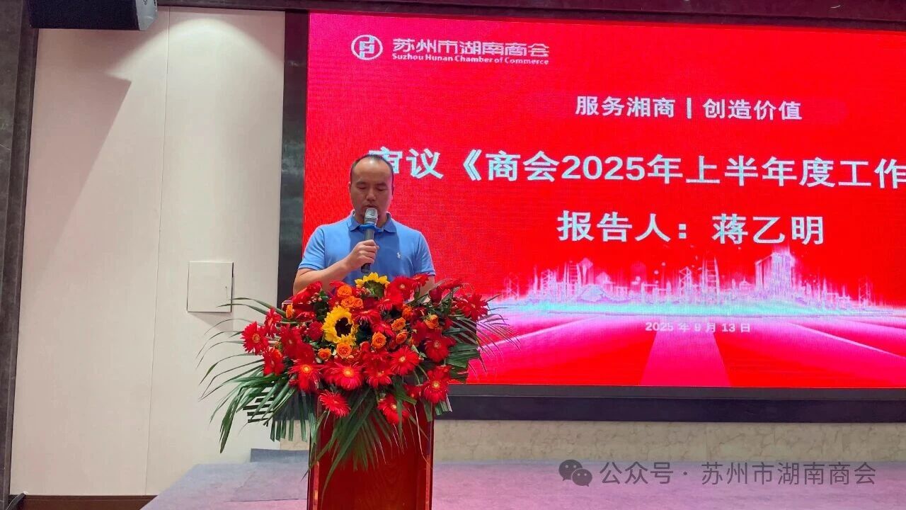 会长蒋乙明在工作报告中指出,商会2025年上半年在强化组织建设、创新会员服务及打造“湘链会”产业平台等方面成效显著,并部署了下半年深化精准服务、促进产业融合及开拓国际市场等重点任务,2025年下半年,苏州市湖南商会将继续秉承“服务湘商、创造价值”的宗旨,以更加饱满的热情和更加坚定的步伐,推动商会各项工作再上新台阶。
