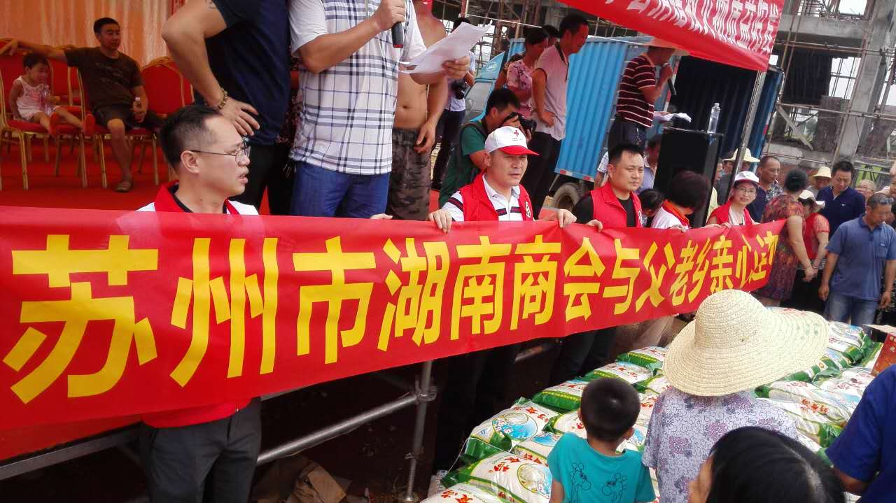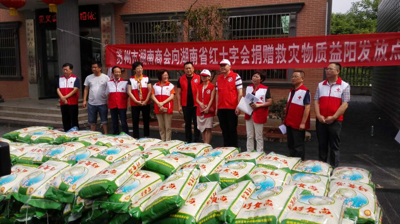 在得知7月湖南大范围水灾的情况后,苏州市湖南商会第一时间与湖南省红十字会对接,并迅速筹集物资,一一交付到受灾群众手中。