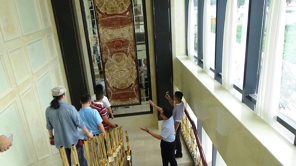 随后,大家来到了王朝石材的展厅进行参观学习。 整个展厅占地1800平方米,总共有3层,按不同风格和功能来划分展馆,简直是石材的博物馆,大家先后参观了中式馆、欧式馆,红酒吧,多媒体娱乐厅等,对眼前陈列的各类形态各异的石材装饰叹为观止。
